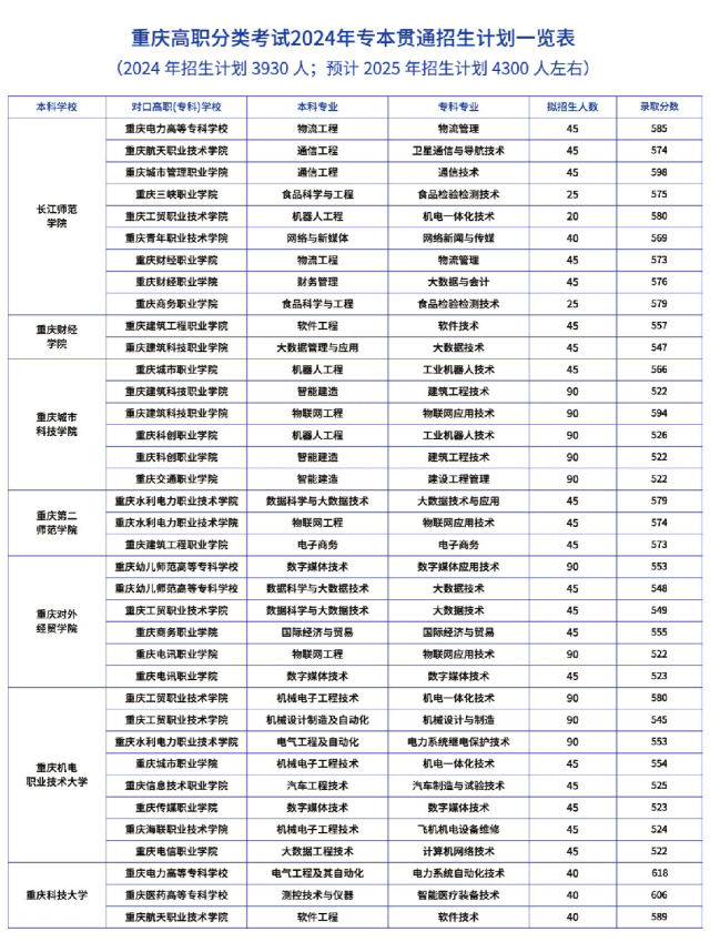 职业技能测试:含专业理论笔试和专业技能实作,测试科目、标准、内容由开展贯通培养项目转段招生的高校(简称“对接高校”)自行确定。原则上在专业核心课程中随机确定3门,每门课程分值均为150分,满分450分。