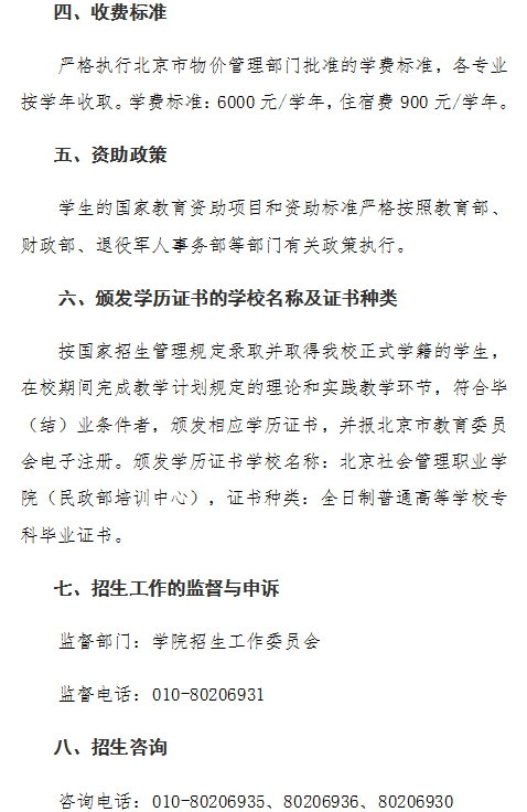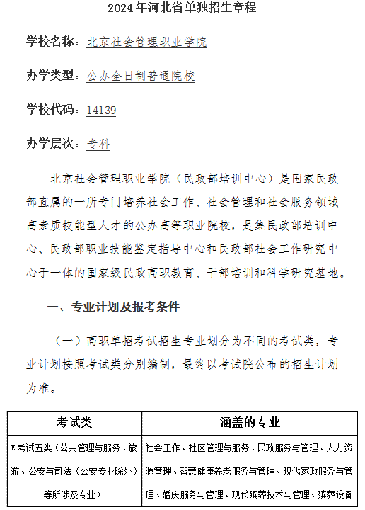 北京社会管理职业学院2024年河北省单独招生章程