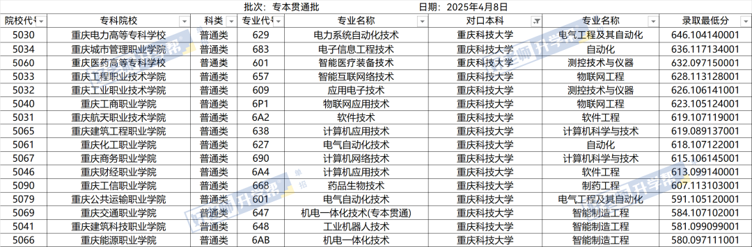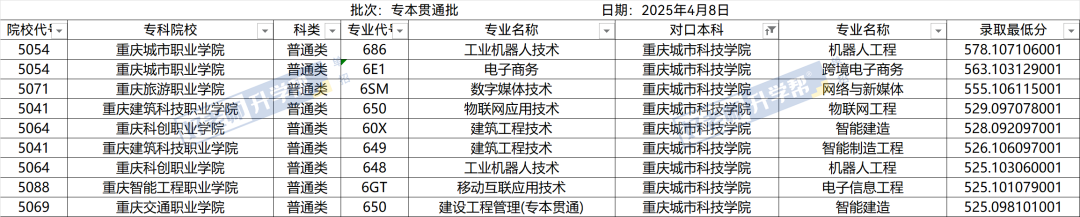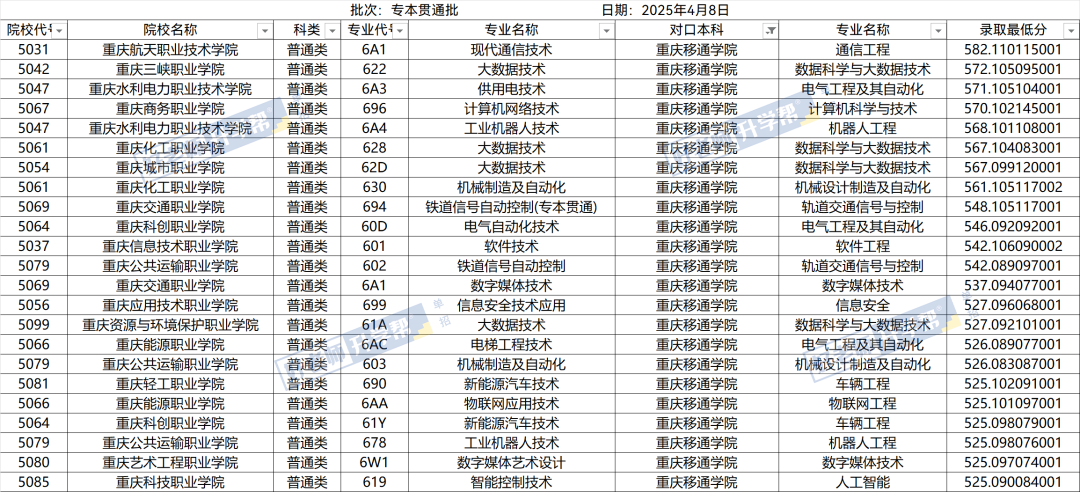 重庆春招丨10所专本贯通院校排名、录取分数线,26届关注!