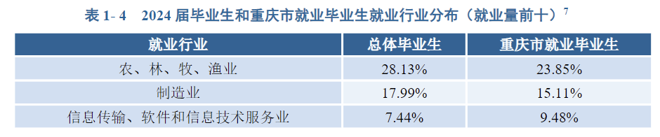 2024 届毕业生就业行业主要集中在“农、林、牧、渔业”“制造业”和“信息