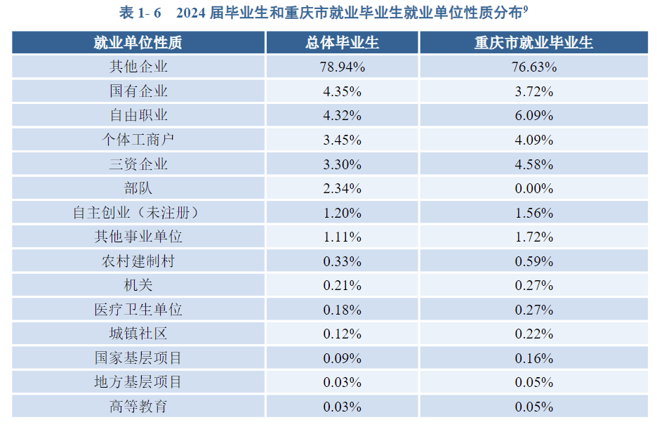 2024 届毕业生主要流向性质为“其他企业”“国有企业”的单位,占比依次为